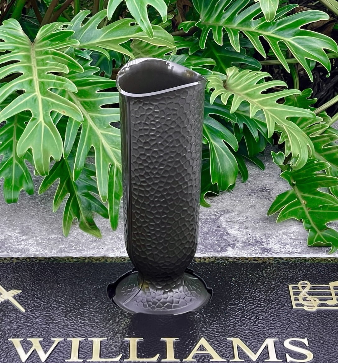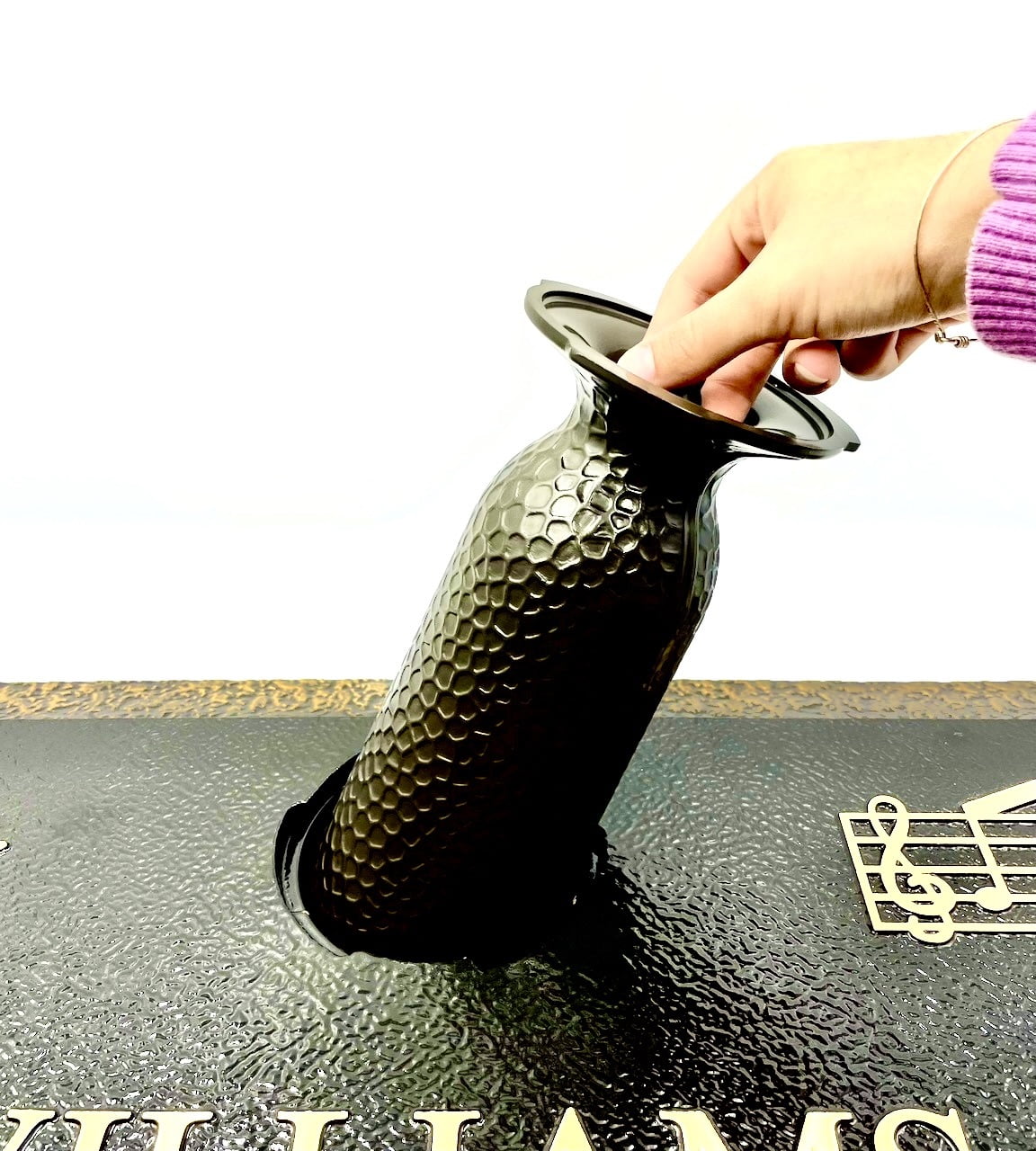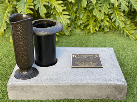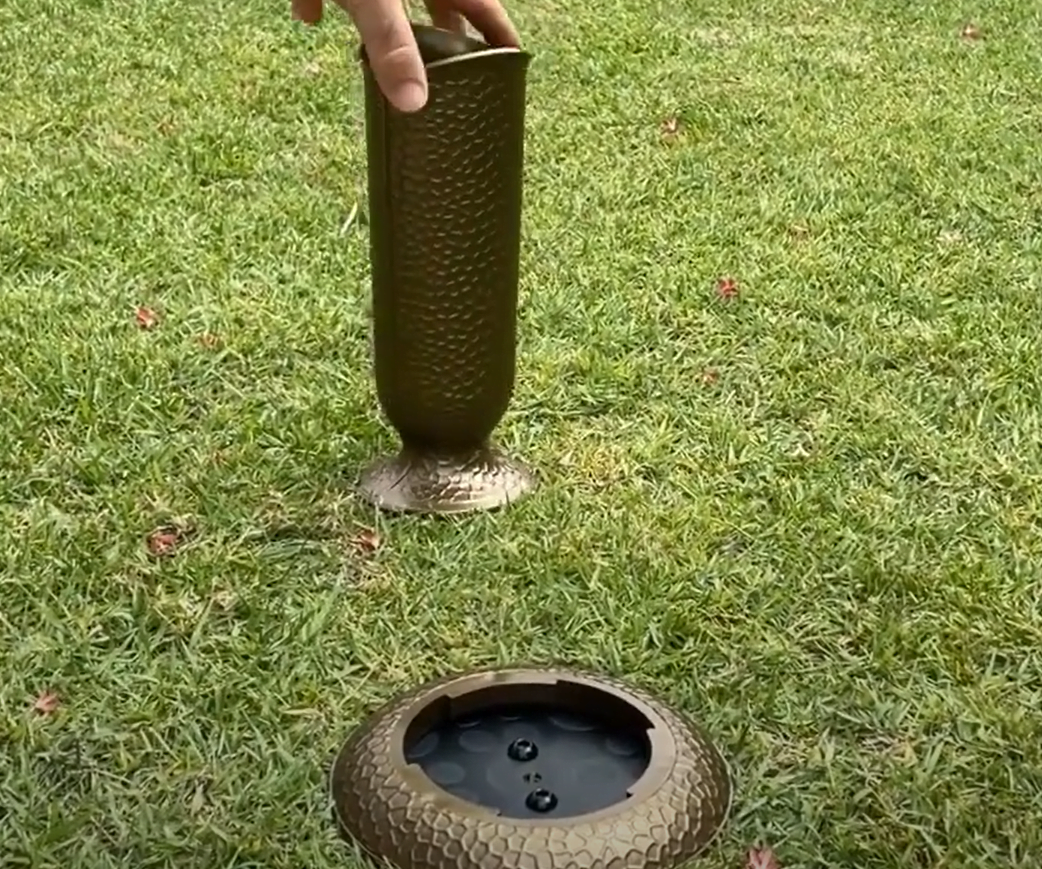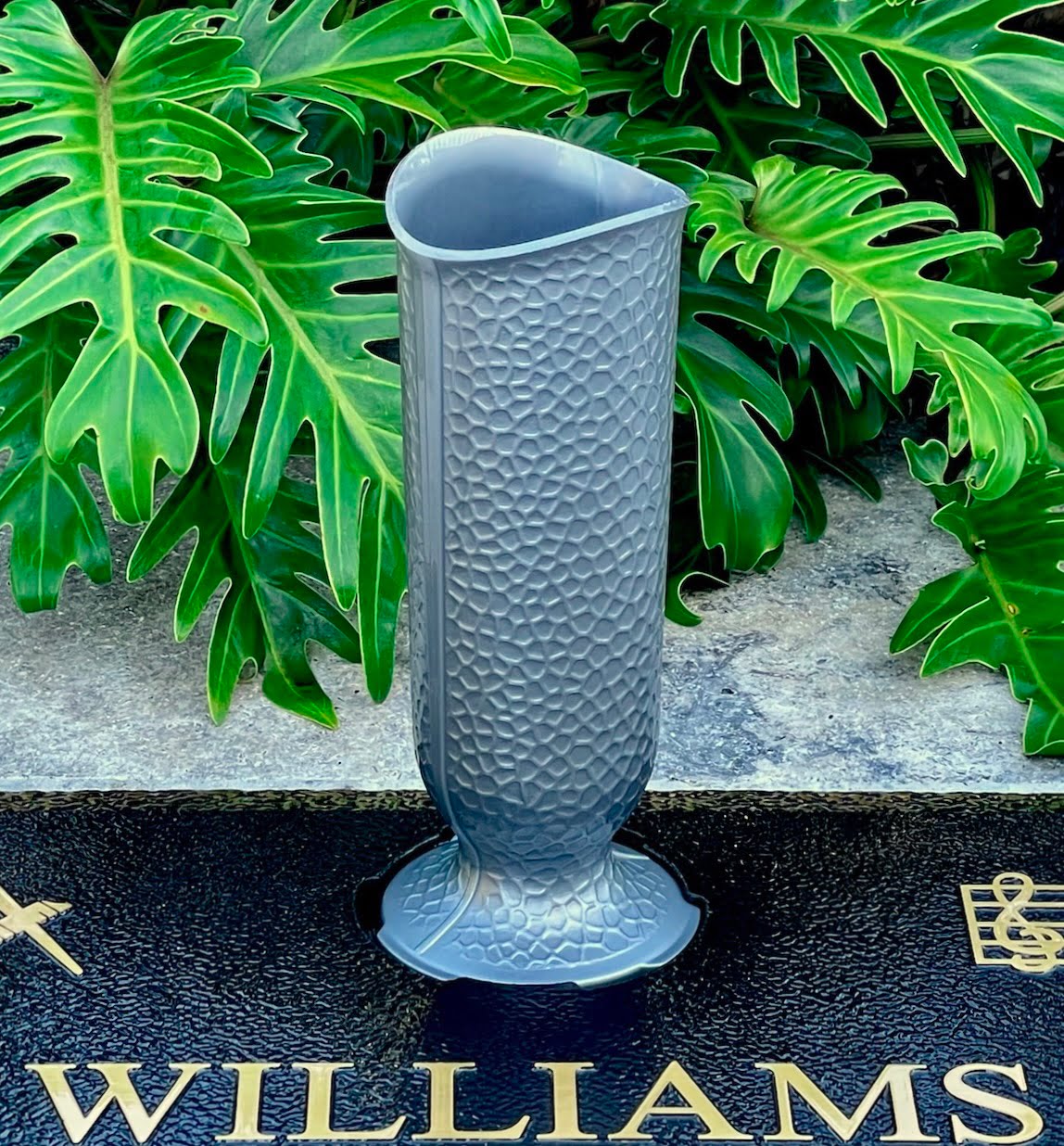 Complete temporary lawn vase for floral programs or placeholder for new interments.