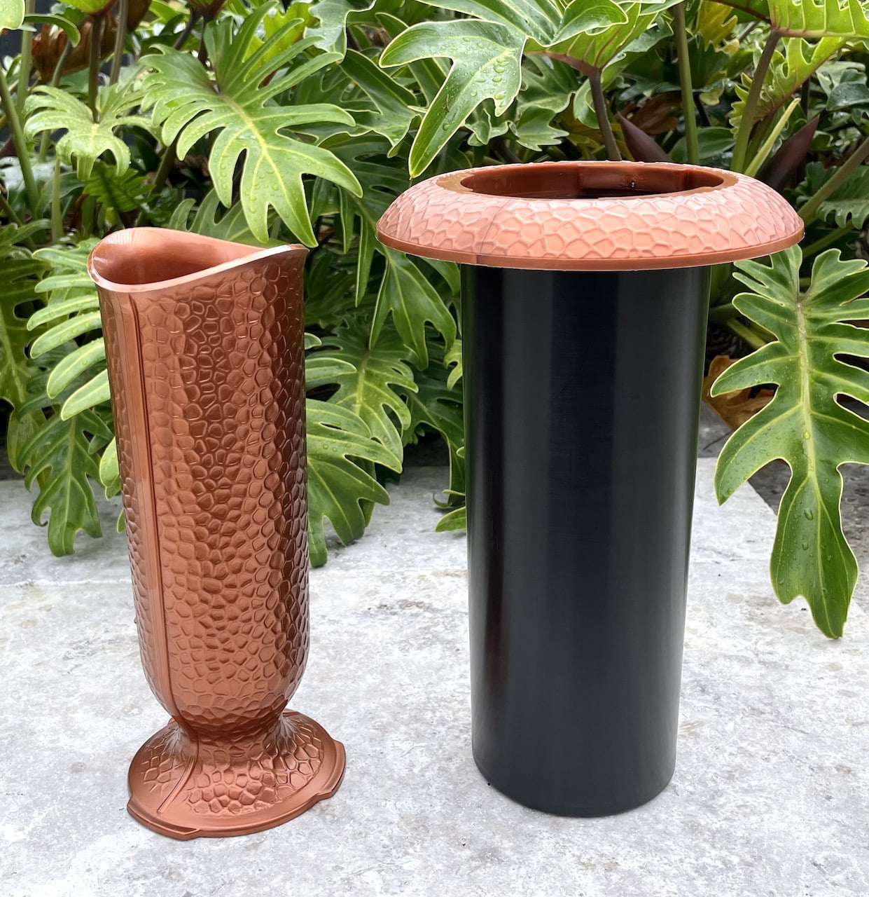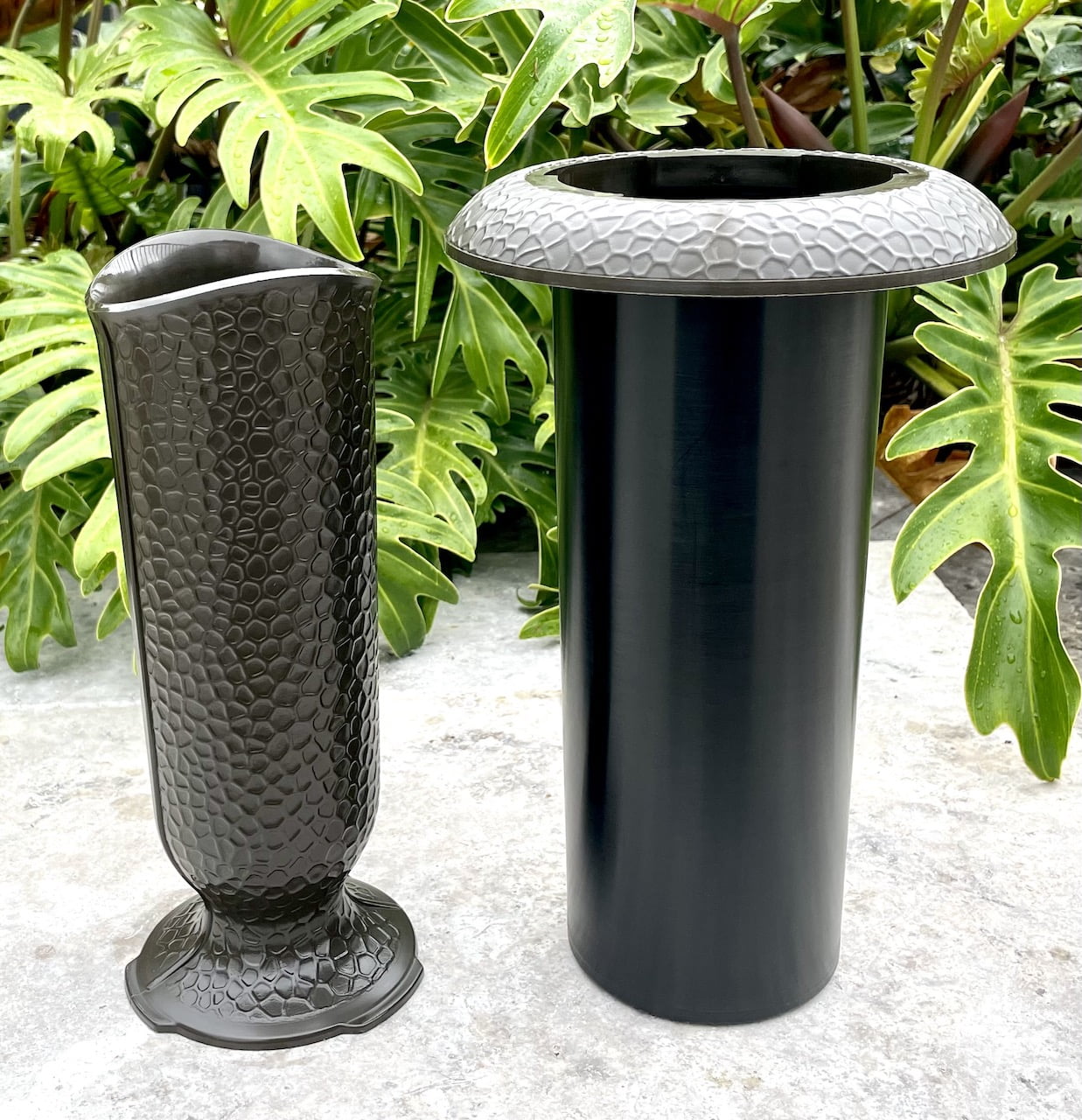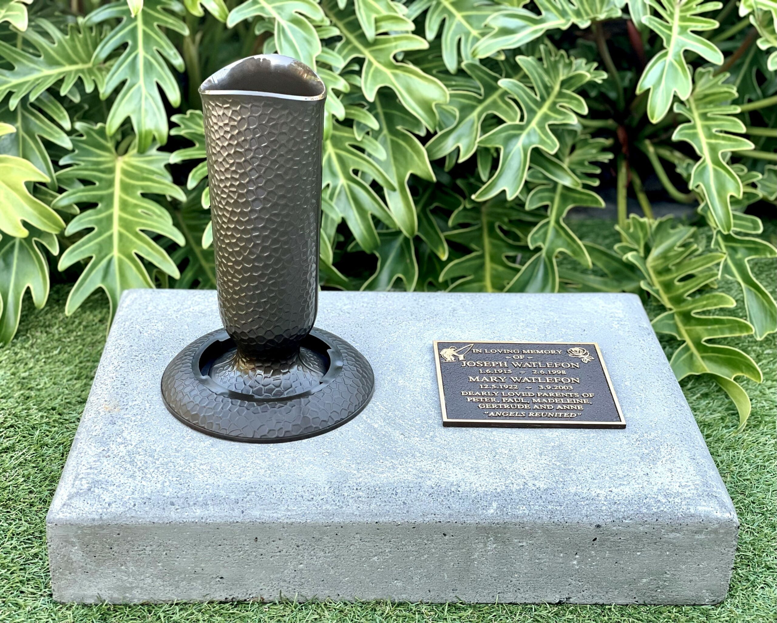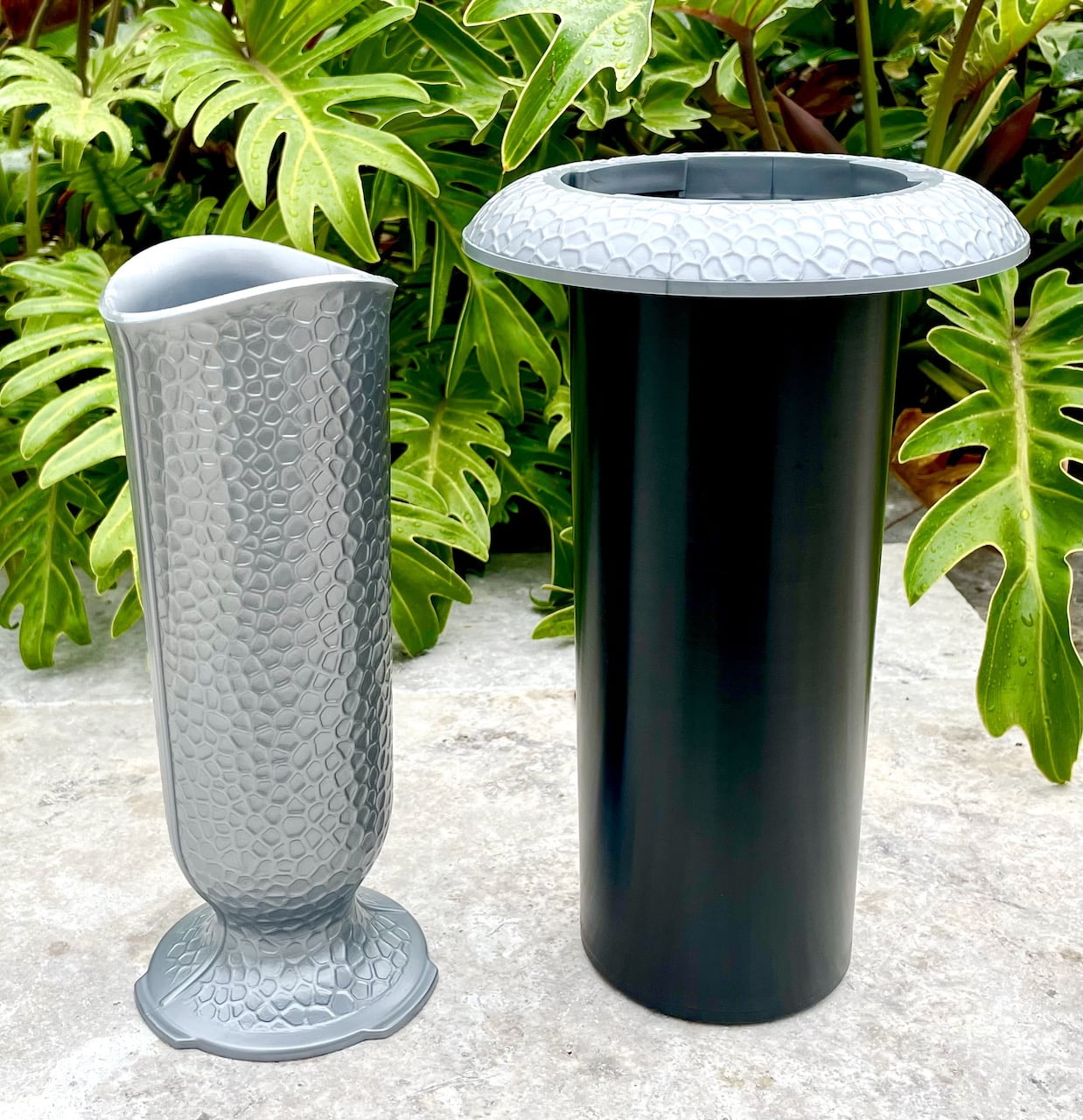 Complete temporary lawn vase for floral programs or placeholder for new interments.